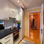 Das Apartment verfügt über einen Balkon und eine Sitzecke, ausgestattet mit Parkettbodenbelag und Möbel, darunter ein Sofa und ein Schreibtisch. Die Unterkunft bietet auch WLAN und einen Flachbildfernseher mit Satellitenkanälen und Sicherheitseinrichtungen, darunter Rauchmelder, die für Ihre Sicherheit sorgen. Dieses Apartment zählt 1 Zimmer. Zur Ausstattung dieses Apartments gehören 1 Badezimmer mit einer getrennten Toilette, einer Badewanne und einer Dusche sowie einem Haartrockner und einem Wäschetrockner.